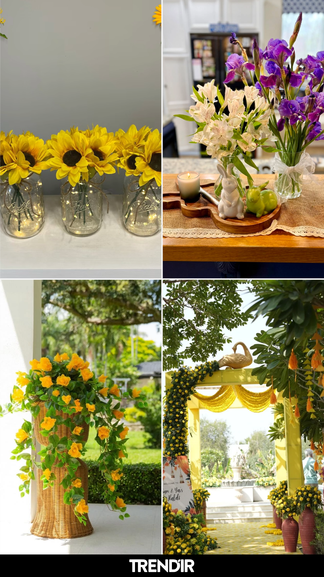 This is yellow at its most joyful, layered in marigolds, draping garlands, and sunlit pathways. It feels festive, grounded in tradition, and completely immersive.