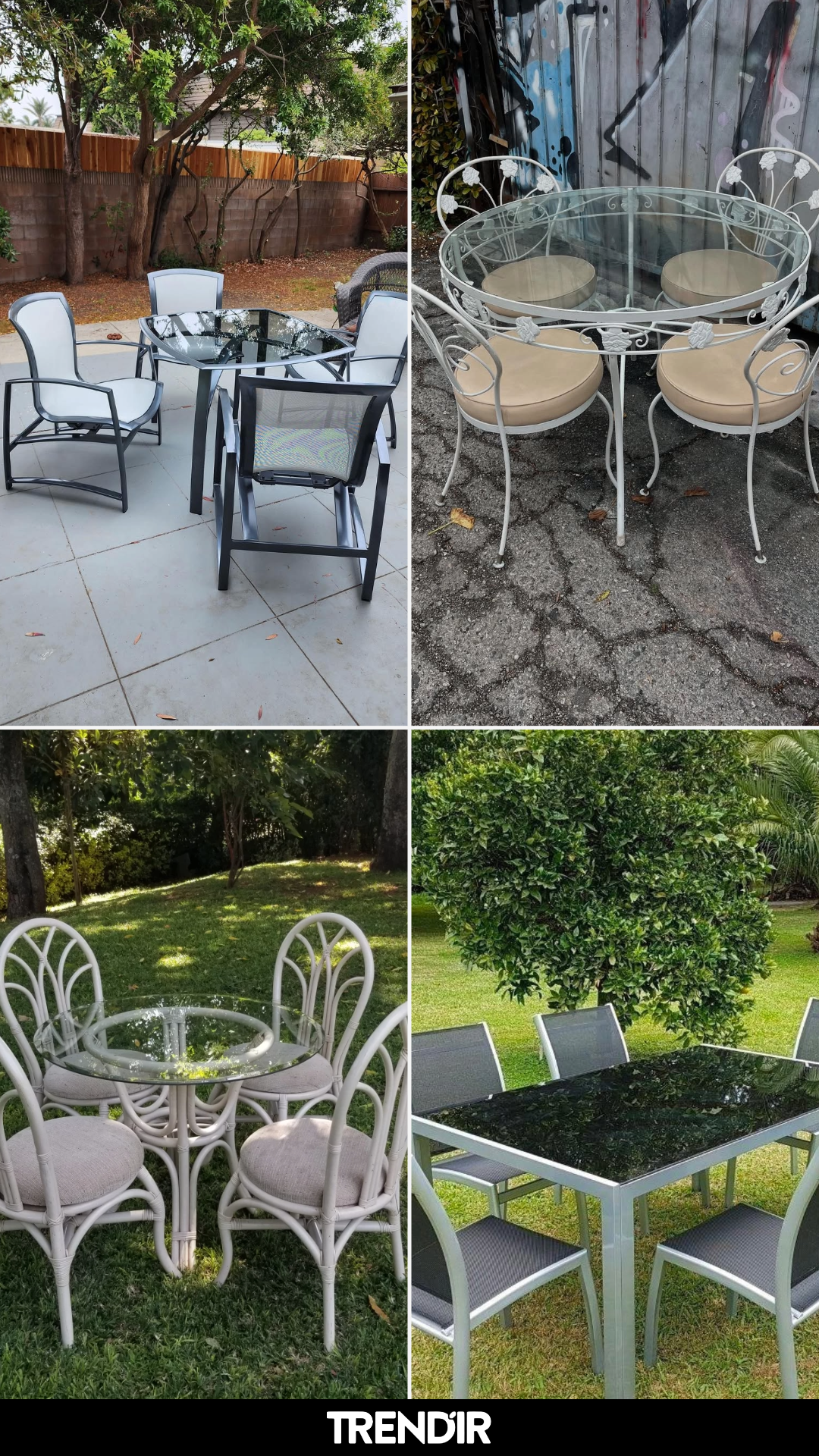 Here’s a patio set that feels like it’s lived a life—in the best possible way. The metal scrollwork, the round glass top, the mismatched surroundings—it all adds up to a look that’s equal parts vintage and soulful.