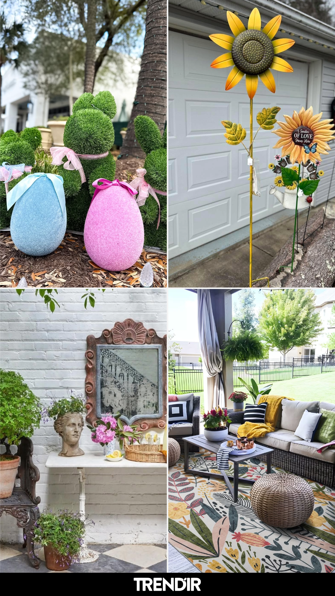 These bunny-shaped topiaries paired with oversized pastel eggs bring a playful twist to spring styling. It’s festive without feeling overdone.